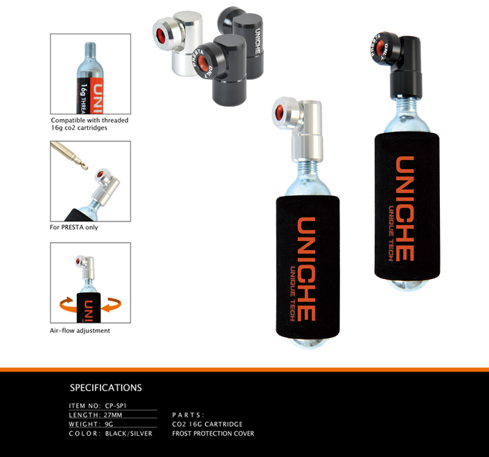 For fast inflate the tire, the CO2 INJECTOR-SPRINT designed without valve thread and it is for PRESTA only. 100% CNC machined aluminum make it super lightewight and durable. |